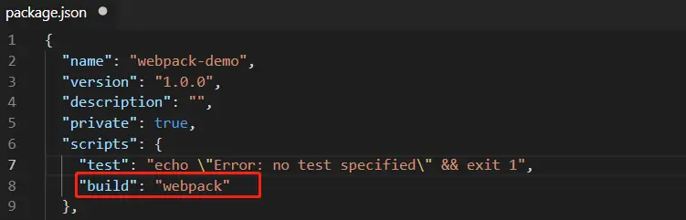 四、在package.json文件中添加一个npm脚本,这样运行本地的webpack比较方便