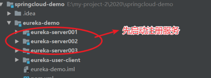 - 先启动注册服务
