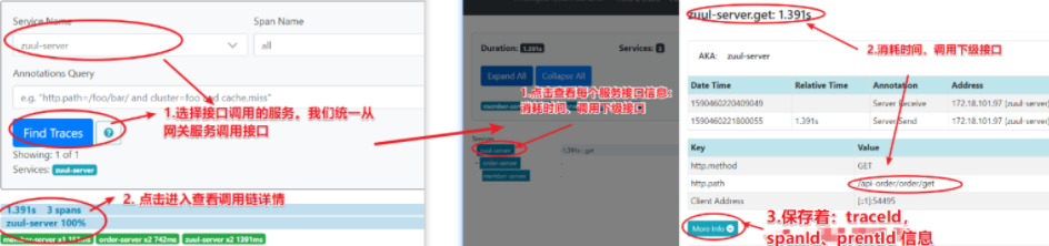 - 调用 zuul-server 生产者。确定调用链入口是 parentId 找到调用链入口 zuul-server 生产者