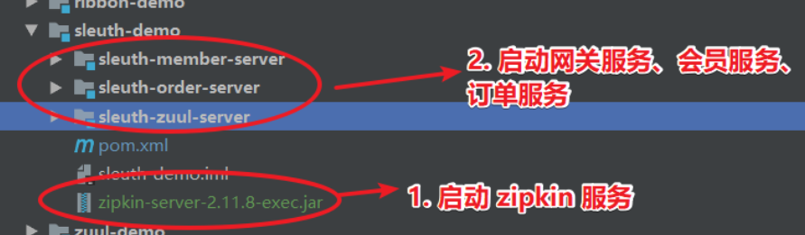 - 启动 zipkin 服务、网关服务、会员服务、订单服务