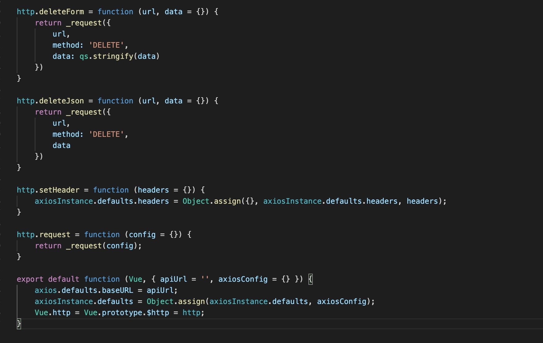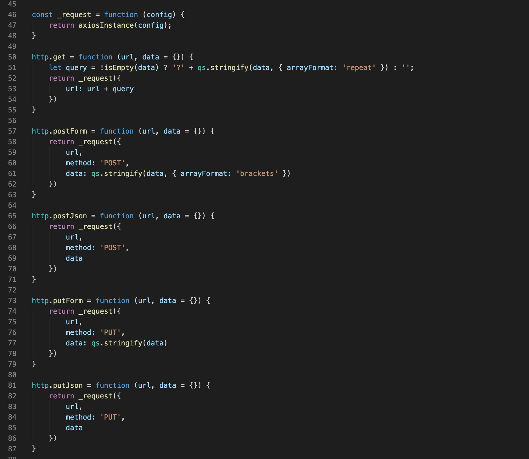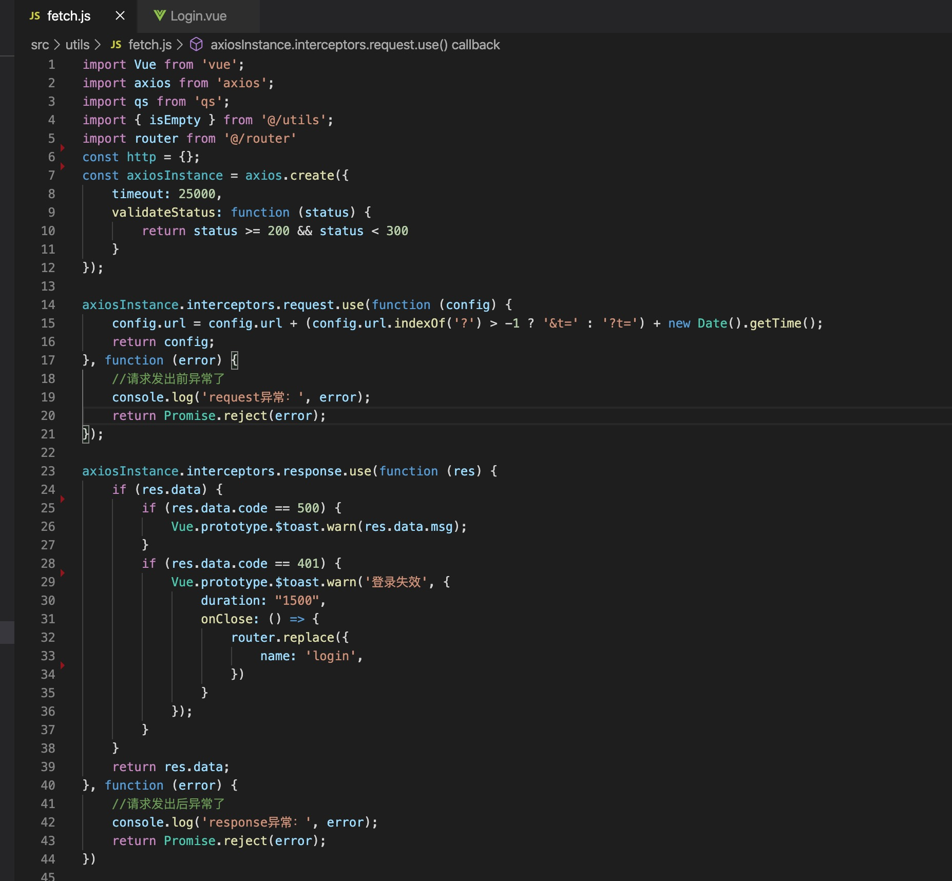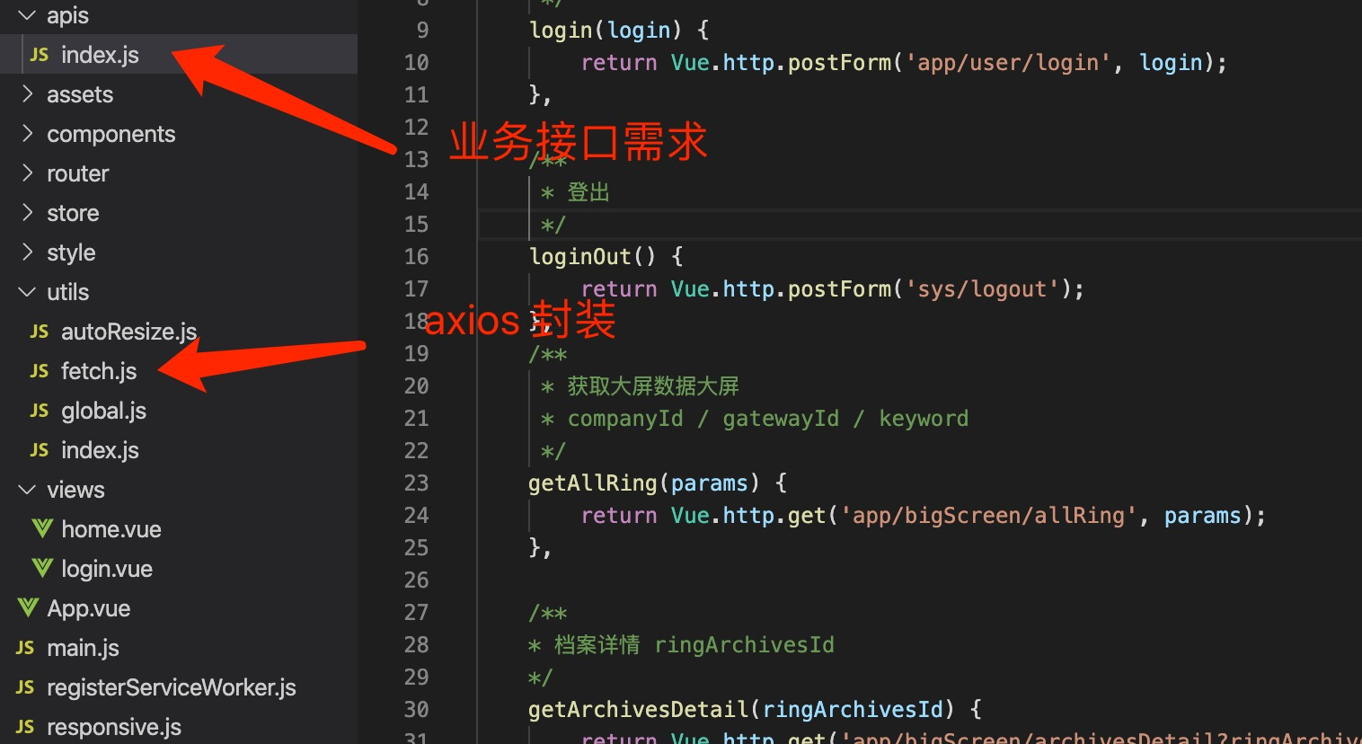 Axios 的 Vue 封装 saintlast 2020-06-03 150 阅读1分钟 介绍支持node端和浏览器端支持 Promise丰富的配置项社区支持安装cnpm install axios好咯 不逼逼 直接上代码怎么调用呢?来来直接上图1、业务接口需求2、全局挂载3、业务调用到这里 封装也就完事了,业务模块的请求也封装了,ok!就这样子!!goodbye