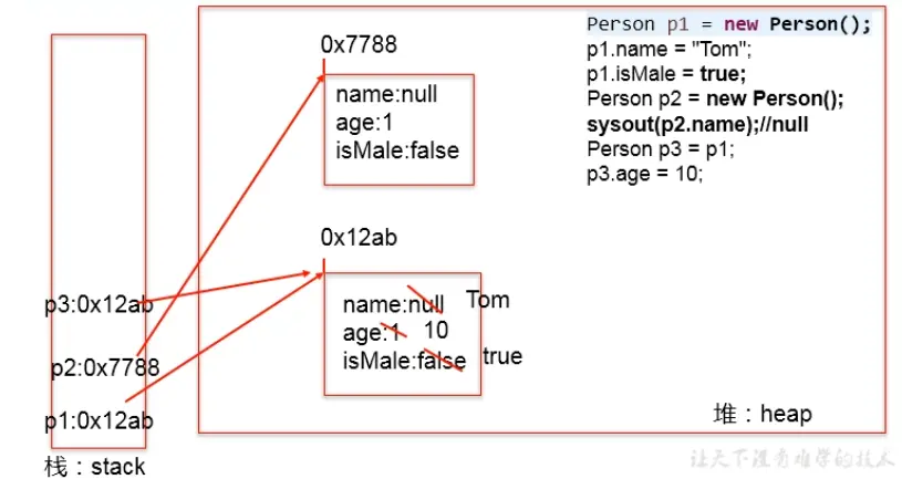 //将p1变量保存的对象地址赋给p3,导致p1和p3指向了堆空间中同一个对象实体。