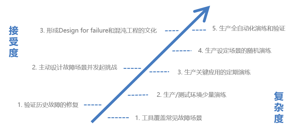 首先是混沌工程的接受度。混沌工程并不仅仅是解决技术问题,同时也是一种面向失效设计文化的建立过程。过去,程序员们每天在产品经理的狂追猛打下需要完成各种功能性需求,而很多非功能性需求会被妥协。当真实故障发生的时候,往往束手无策。所以只交付功能是不够的,构建功能的同时必须考虑高可用性、可扩展性、安全性等非功能要素。