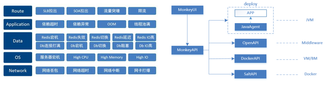 这些场景可以抽象为五大类:访问入口类、应用类、数据类、系统和网络等基础设施类。这些抽象的故障场景即为需要实现的故障注入能力。