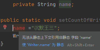 其中,countOfWriters 被称为静态变量,它有别于 name 和 age 这两个成员变量,因为它前面多了一个修饰符 static。