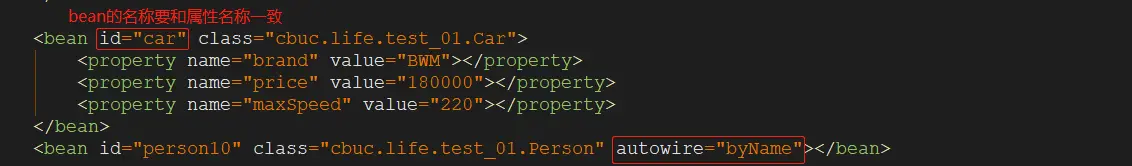 <bean id="Mycar" class="cbuc.life.test_01.Car">
