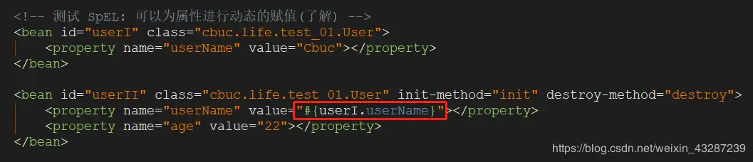 - SpEL 为 bean 的属性进行动态赋值提供了便利