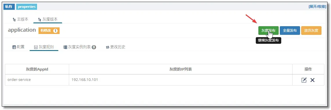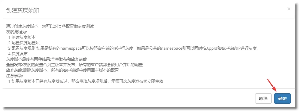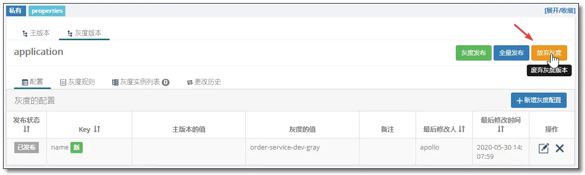 确认放弃灰度以后会删除该灰度版本,并恢复为主版本的配置信息。
