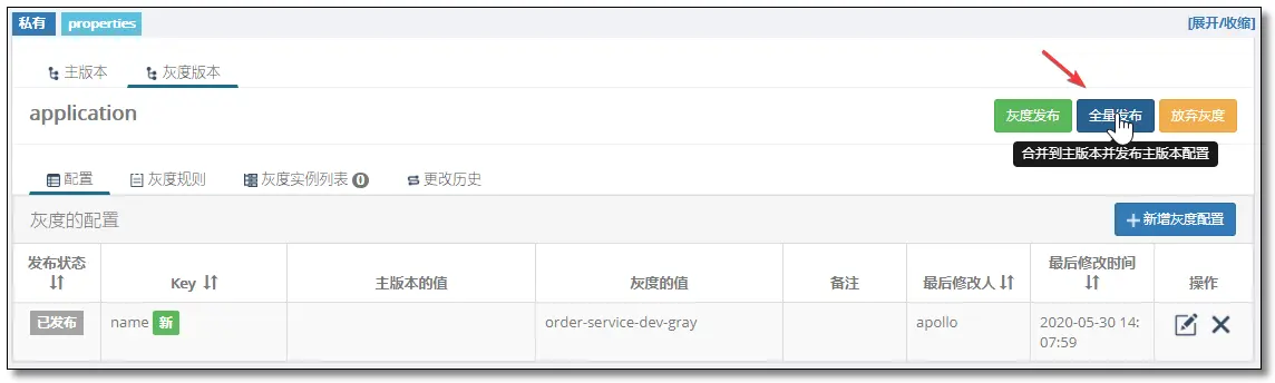 全量发布将会把灰度版本的配置合并到主分支,并发布。