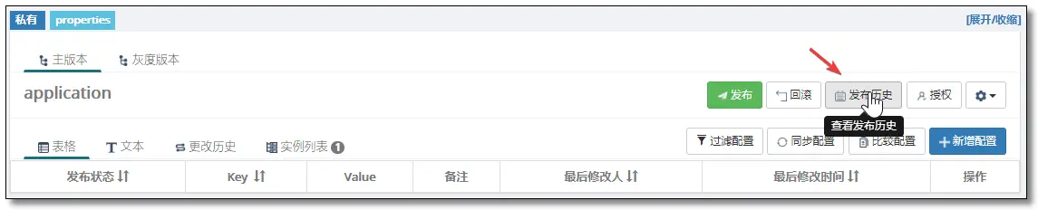 可以通过发布历史来查看所有的发布记录,比如主版本发布,主版本回滚,灰度操作、灰度规则等等。