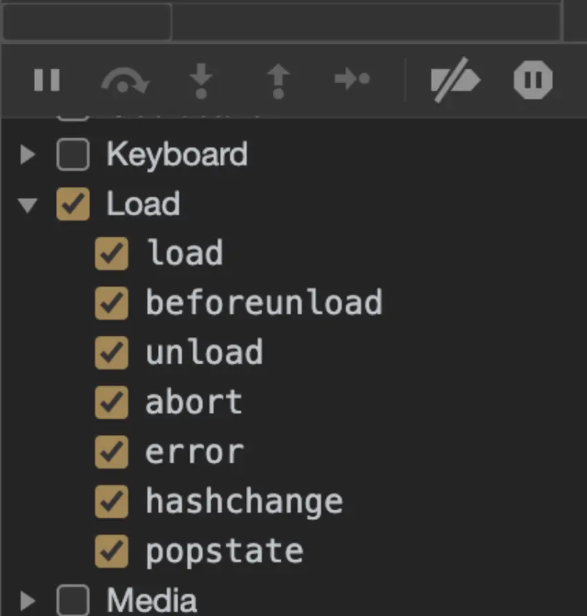 于是我还是想看看为什么上次打断点就没事了,打开维基百科试一下,在开启了翻译的条件下打断点会发生什么。打开source面板,勾选了load事件