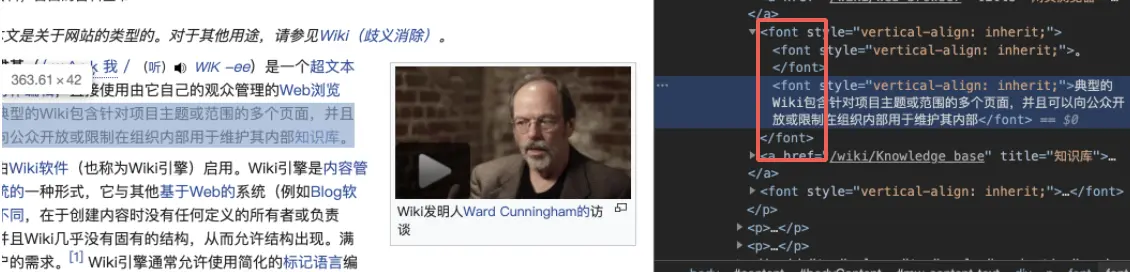 再看看element面板,很多font包裹
