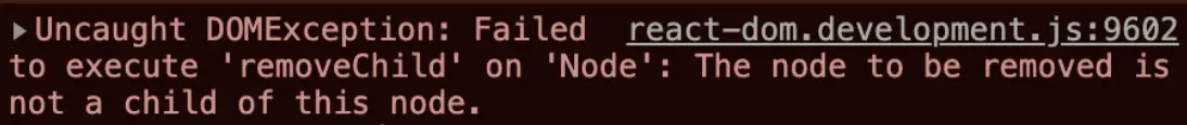其实也不需要手动改,你只需要右键开启翻译为中文就可以复现了。问题根源在于react提前把parentNode存起来了,所以操作的时候找不到子节点