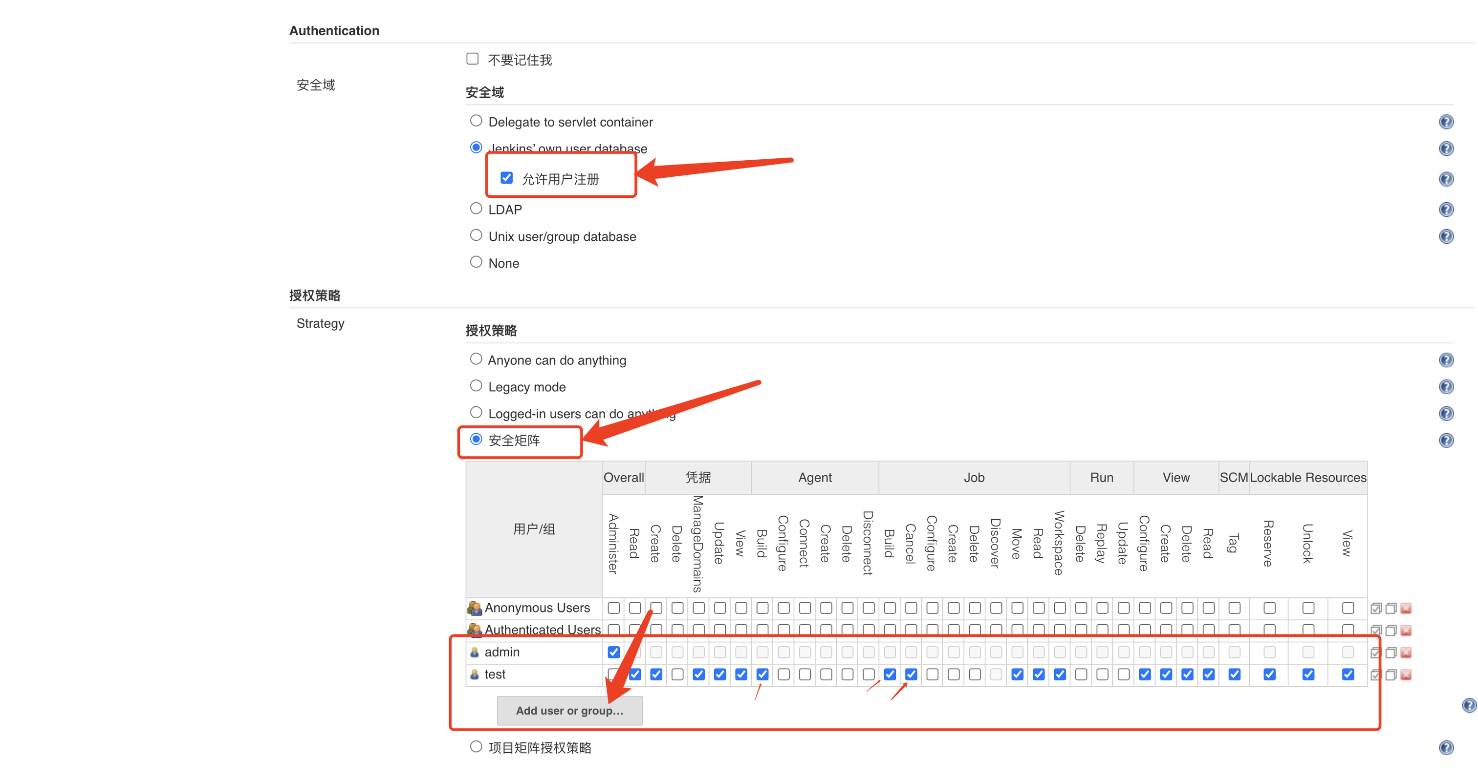 点击进来,点击允许注册(后面再关了,主要是这个时候没有test用户) 按要求配置用户的权限