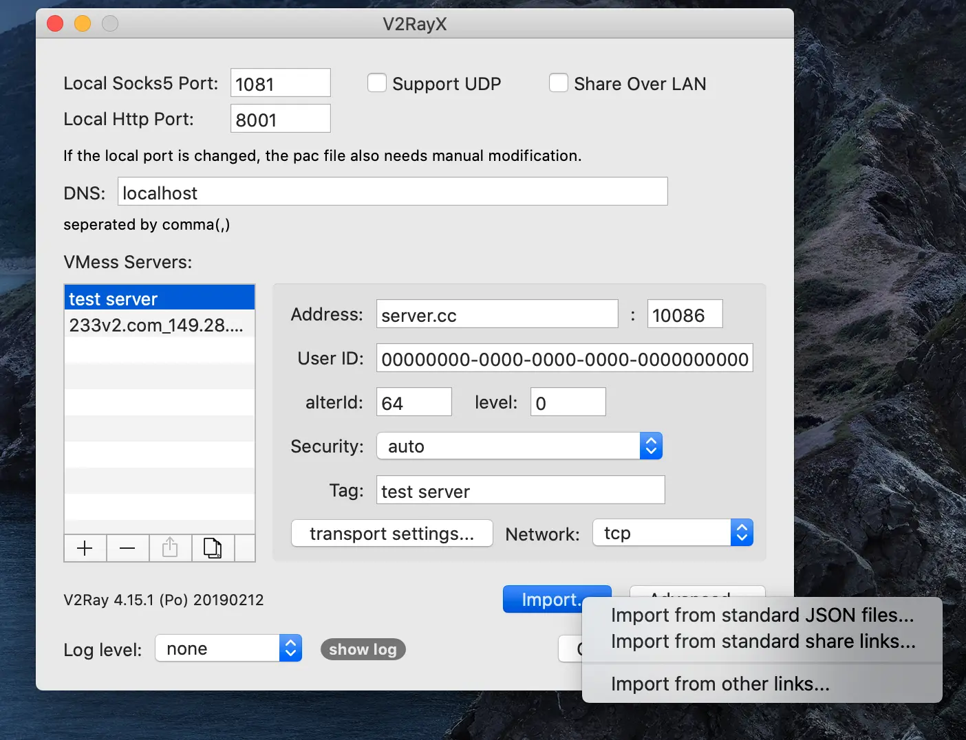 点击import from other links..., 将刚才生成的vultr链接导入,点击完成