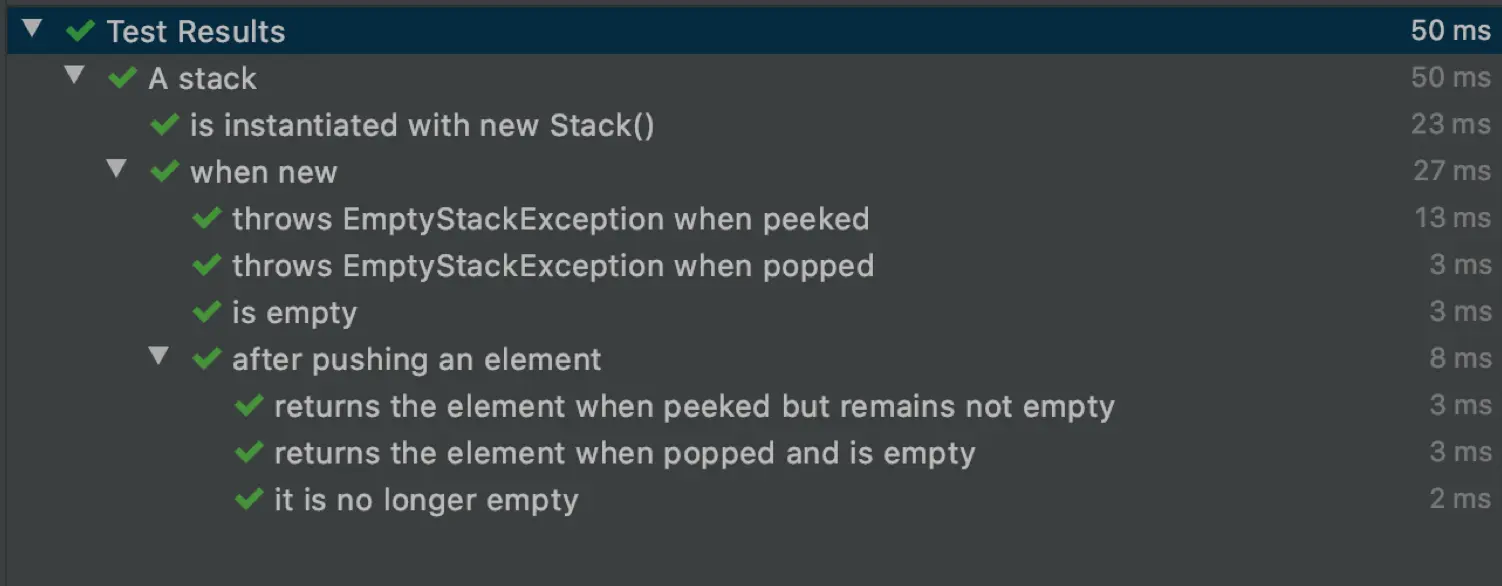一种可行的组织测试代码的方式是:为每个被测试的产品类创建一个对应的测试类。在测试类内部,针对被测类的每个工作单元(一般是方法)分别创建一个注解为@Nested的嵌套类,包含针对这个工作单元的所有测试。