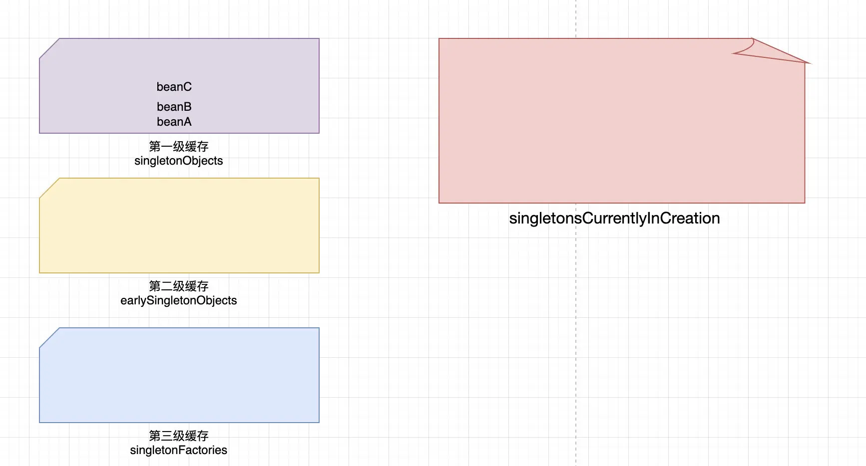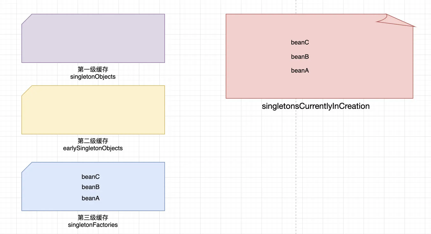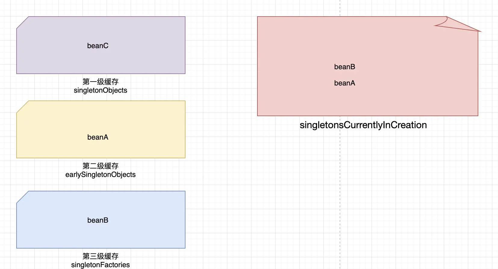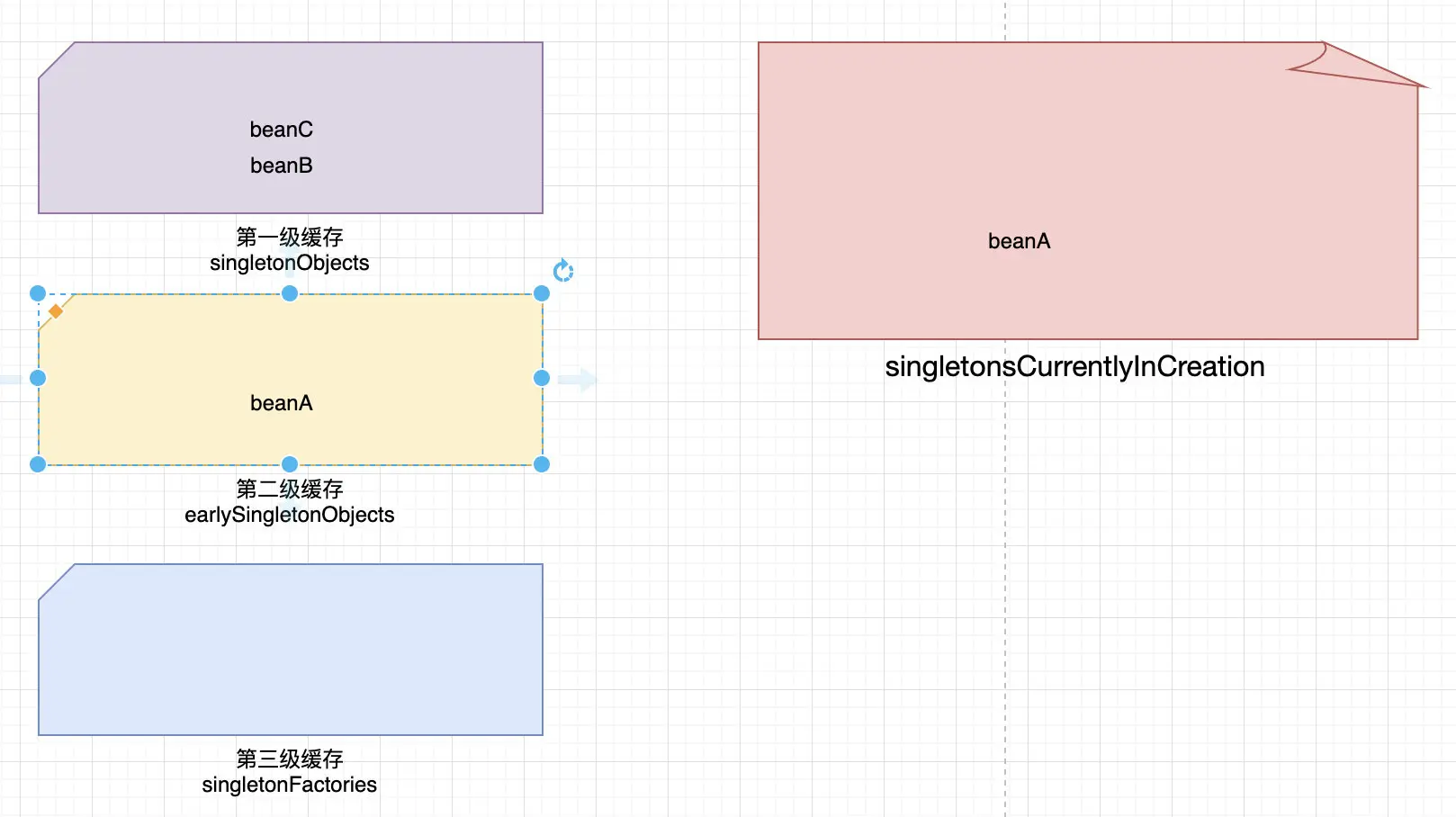 beanB,如果没有则创建一个并不完整的beanB、然后加入到第三级缓存中、然后发现需要填充一个beanC的属性 - 然后如上面那样、先看看三级缓存有没有
