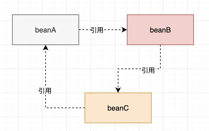 beanA --> beanB --> beanC -->beanA