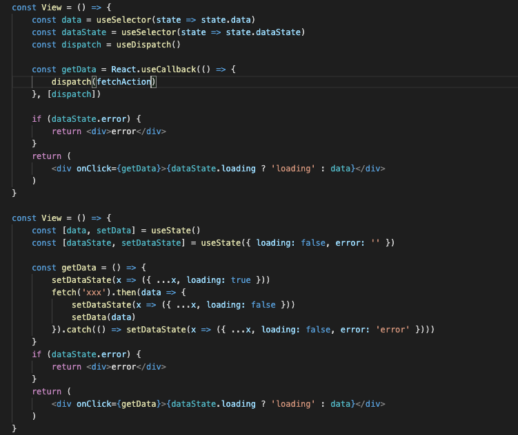 PS: 其实通过 hooks 抽象封装也可以做到 redux 类似的功能,只是类似,随着业务复杂度上升到达了 hooks 很难满足某些特定需求的时候,就需要做一个类似于 redux 的东西,所以为什么不一开始就直接用 redux 呢