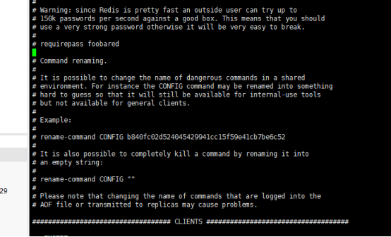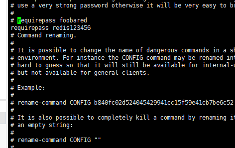 可以选择下面追加一行或者把requirepass foobared打开,把foobared改成自己的密码,本人选择下面追加一行