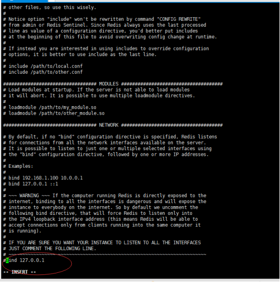 进入到redis.conf所在的目录,然后输入: vi redis.conf