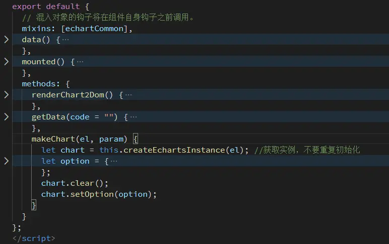 如果有涉及多个图表的页面,不妨把echarts实例的创建、销毁生命周期抽离成mixin注入,可增加开发规范性,并且方便维护,以下仅供参考: