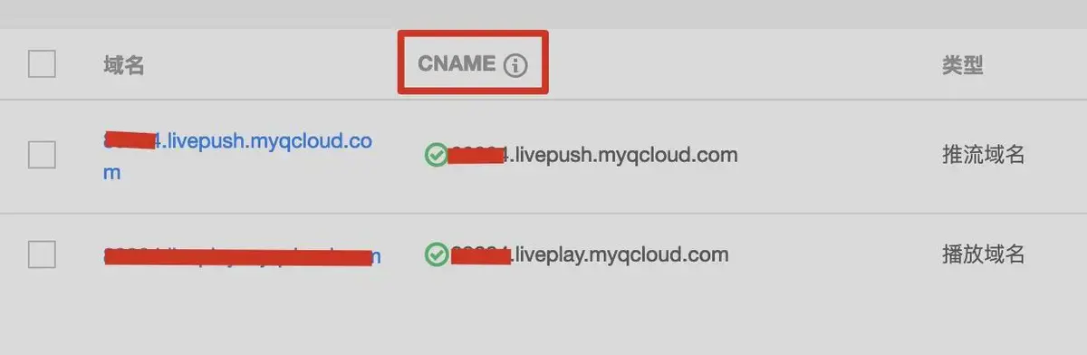 腾讯云已经为我们提供了一个 推流域名,所以我们其实只需要提供一个域名用于播放就可以了。
