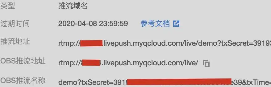其中: 主key 很重要,用来参与推拉流地址中权鉴的计算。