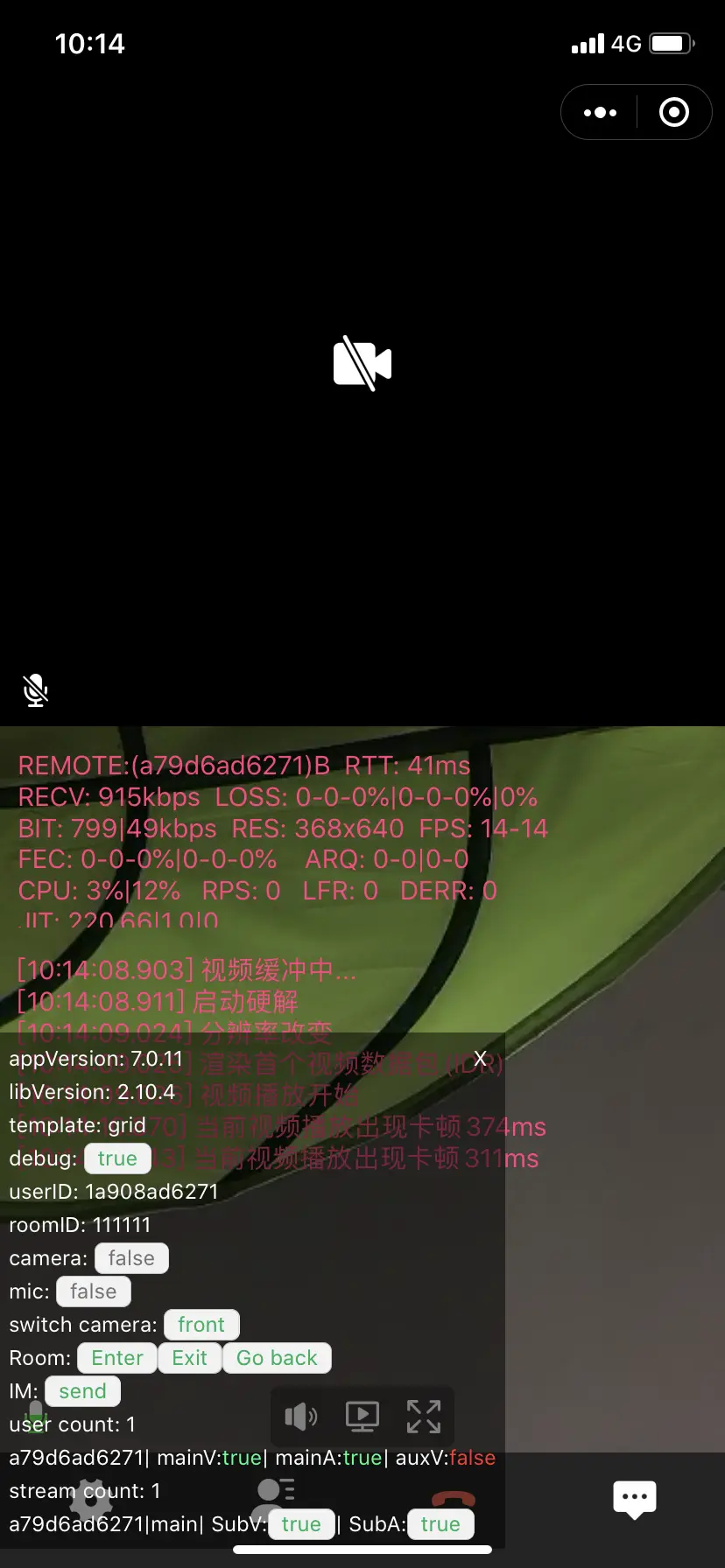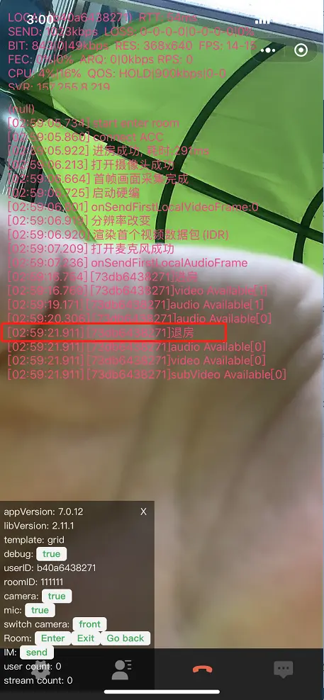 点击小圆点后触发5000挂起事件,代码中并没有退房,底层sdk处理退房,返回前台后自动进房。
