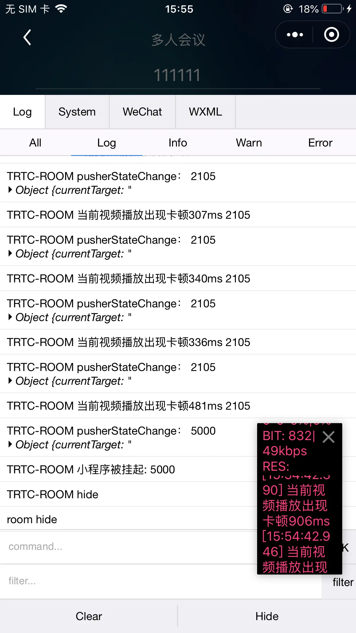 触发5000,hide,无法点击小窗重新进房