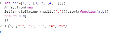 Array.from(new Set(arr.toString().split(','))).sort(function(a,b){