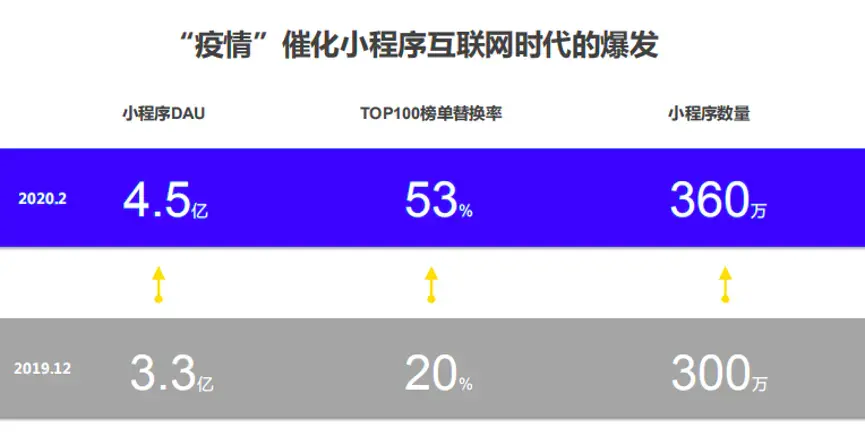 上文我们曾提到了疫情期间大火的行业,但如果你要问最火的前端应用?那就不得不提小程序了。