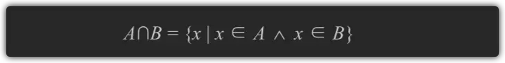 交集(A∩B),找出给定集合中的相同的元素,将找到的相同元素存进一个新集合中,返回这个新集合,该集合定义如下,意思为:X(元素)存在于A中,且X存在于B中。