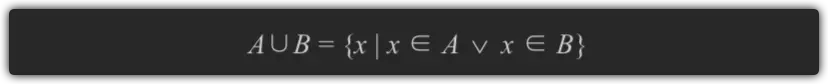 并集(A∪B),将给定集合中的元素进行合并,存进一个新集合中,返回这个新集合,该集合定义如下,意思为:X(元素)存在于A中,或X存在于B中。