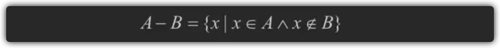 差集(A - B),给定两个集合,找出集合中不存在于另一个集合中的元素将其存进一个新集合里,返回这个新集合,该集合定义如下:意思为:X(元素)存在于A中,且X不存在于B中。