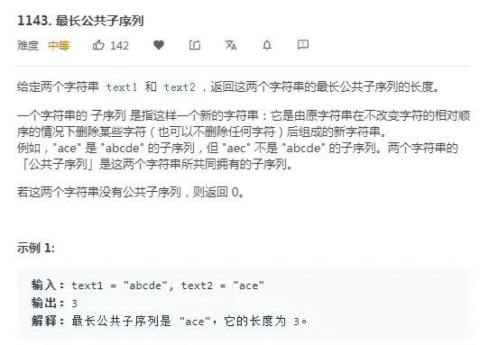- 最终验证了答案,当两个字符相等的时候,就等于上一个规模小的问题加1,不想等的就相当于有没有这个字符都一样。取两个串少一个的情况下的最大值就可以了。