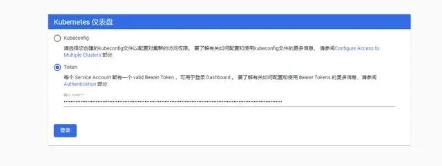 访问 https://集群任意节点IP:30443,打开Dashboard登录页面,执行如下命令获取登录token
