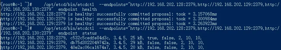 $ /opt/etcd/bin/etcdctl --endpoints="http://192.168.202.128:2379,http://192.168.202.129:2379,http://192.168.202.130:2379" endpoint health
