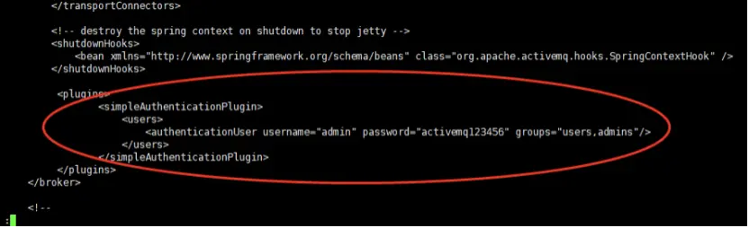 <authenticationUser username="admin" password="activemq123456" groups="users,admins"/>