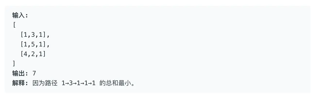 给定一个包含非负整数的 m x n 网格,请找出一条从左上角到右下角的路径,使得路径上的数字总和为最小。