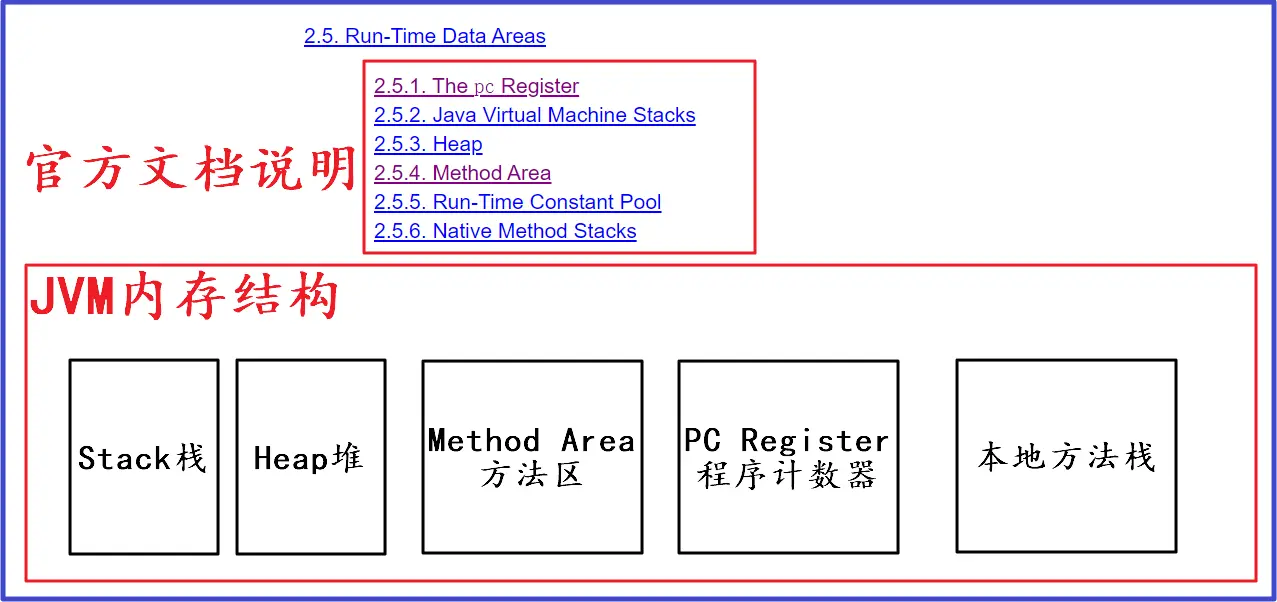 其中官方文档中还有一个运行时常量池,暂且不考虑。