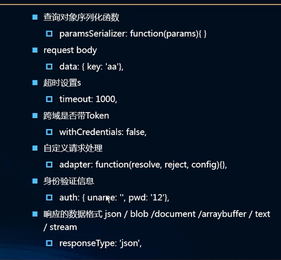 // responseType 表示服务器响应的数据类型,可以是 'arraybuffer', 'blob', 'document', 'json', 'text', 'stream'