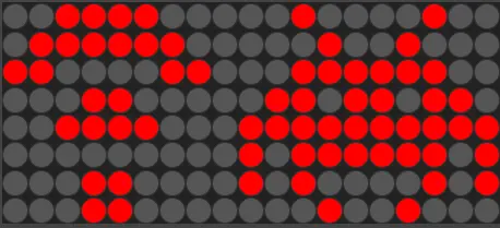 上面我们设计了秒表动画,但是还有一个问题,由于点阵屏空间限制,我们没办法用数字显示精确的秒数,那怎么办呢?我们观察到,在点阵屏的底部还空了 2 个像素点的高度,所以我们可以在最后一行通过点数显示精确到秒数。