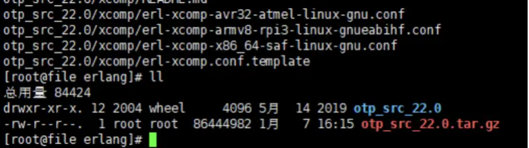2、解压tar -zxvf otp_src_22.0.tar.gz