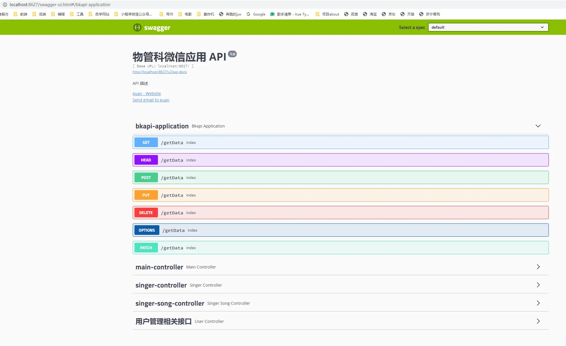 package com.example.bkapi.common.config; import org.springframework.boot.autoconfigure.condition.ConditionalOnProperty; import org.springframework.context.annotation.Bean; import org.springframework.context.annotation.Configuration; import springfox.documentation.builders.ApiInfoBuilder; import springfox.documentation.builders.PathSelectors; import springfox.documentation.builders.RequestHandlerSelectors; import springfox.documentation.service.ApiInfo; import springfox.documentation.spi.DocumentationType; import springfox.documentation.spring.web.plugins.Docket; import springfox.documentation.swagger2.annotations.EnableSwagger2; import springfox.documentation.service.Contact; //swagger2的配置文件,在项目的启动类的同级文件建立 @Configuration @EnableSwagger2 //是否开启swagger,正式环境一般是需要关闭的(避免不必要的漏洞暴露!),可根据springboot的多环境配置进行设置 @ConditionalOnProperty(name = "swagger.enable", havingValue = "true") public class Swagger2 { // swagger2的配置文件,这里可以配置swagger2的一些基本的内容,比如扫描的包等等 @Bean public Docket createRestApi() { return new Docket(DocumentationType.SWAGGER_2) .apiInfo(apiInfo()) .select() // 为当前包路径,这里路径写错,将会报错No operations defined in spec! .apis(RequestHandlerSelectors.basePackage("com.example.bkapi")) .paths(PathSelectors.any()) .build(); } // 构建 api文档的详细信息函数,注意这里的注解引用的是哪个 private ApiInfo apiInfo() { return new ApiInfoBuilder() // 页面标题 .title("博客 API") // 创建人信息 .contact(new Contact("guan", "http://zhengzemin.cn:3000/", "1638153584@qq.com")) // 版本号 .version("1.0") // 描述 .description("API 描述") .build(); } }- 在application.yml添加配置