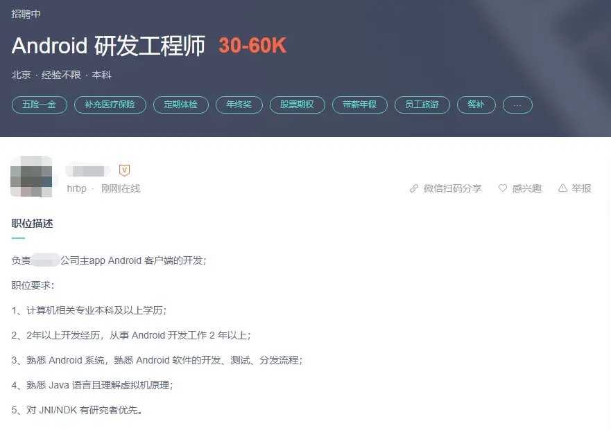 现在各大公司其实都很缺Android研发(中高级),不断的在招人,就拿很多一线互联网来说,别说来面试的人了,就简历都拿不到太多,需要花很多时间去找简历,一度让各大公司争抢也招不到合适的人,造成了很多岗位空缺。