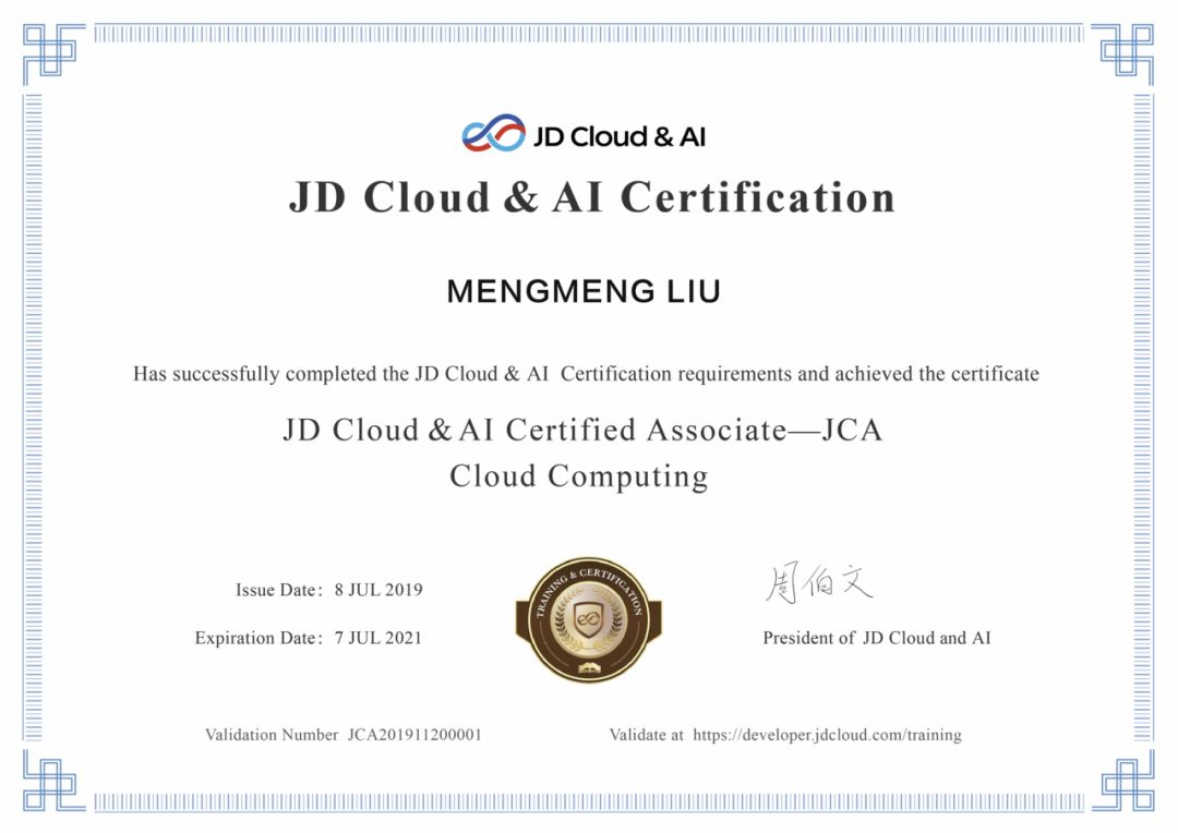 目前我们拥有京东智联云云计算助理工程师认证(JCA)及 京东智联云云运维助理工程师认证(JCA)为京东智联云云基础产品用户和运维人员提供专业技术认证。该项认证内容包括京东智联云的计算服务、网络服务、存储服务及安全等方面的核心产品,是对从业人员或希望进入云行业人员的专业性技能认证。