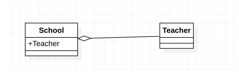 聚合关系也是通过成员对象来实现的,其中成员对象是整体对象的一部分,但是成员对象可以脱离整体对象而独立存在。例如,学校与老师的关系,学校包含老师,但如果学校停办了,老师依然存在。