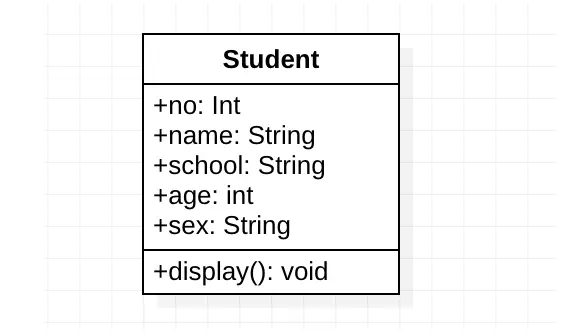 上面的 no、name、school、age、sex 都表示的是属性,下面 display() 表示的是方法。