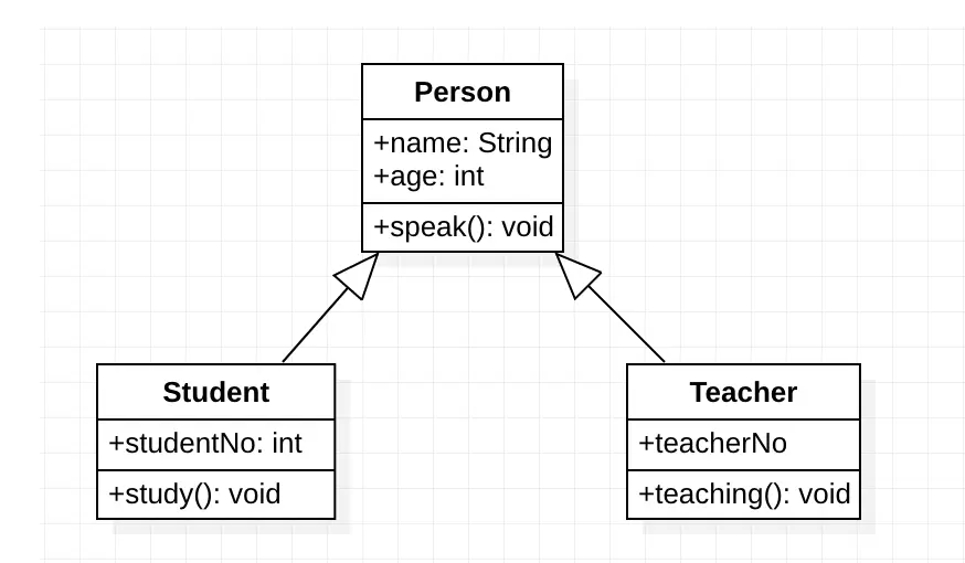 在 UML 类图中,泛化关系用带空心三角箭头的实线来表示,箭头从子类指向父类。在代码实现时,使用面向对象的继承机制来实现泛化关系。例如,Student 类和 Teacher 类都是 Person 类的子类,